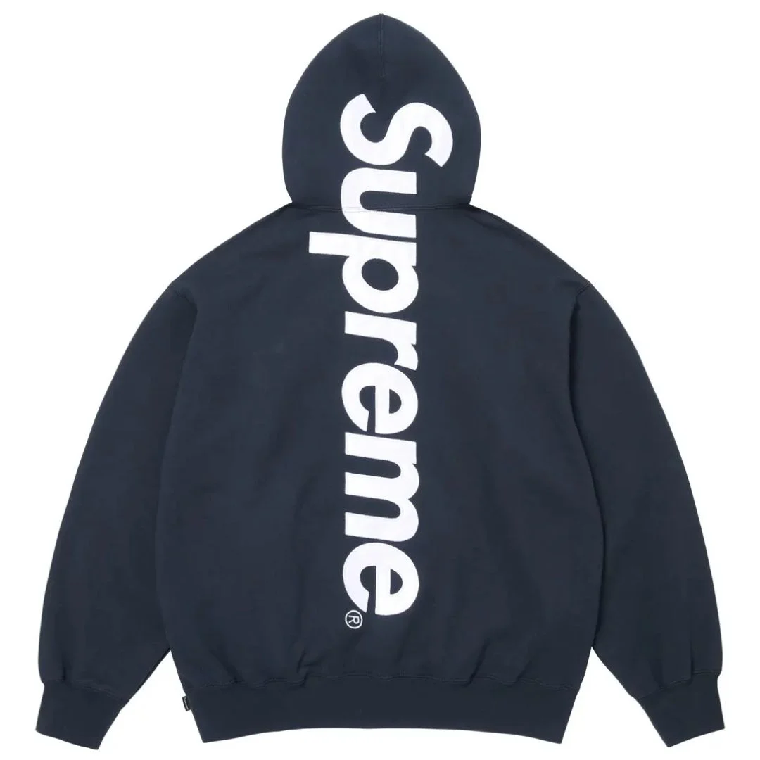 Supreme Satin Applique Hooded Sweatshirt (SS26) Washed Navy